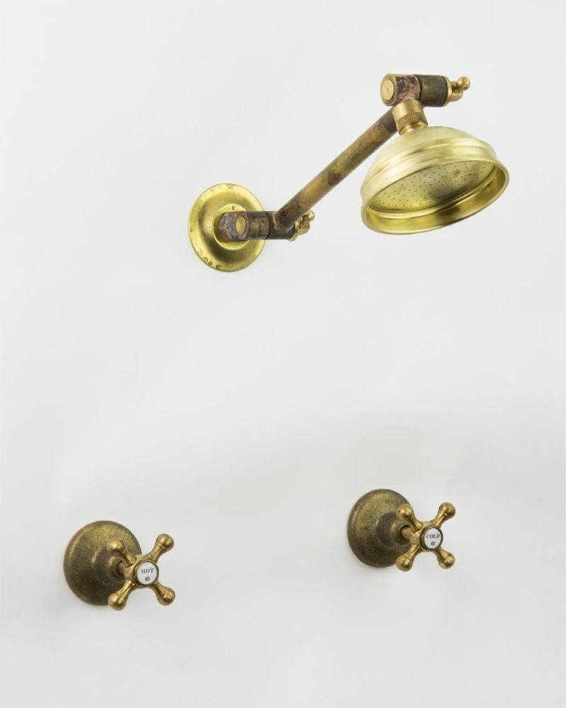 Roulette Adjustable Shower Set includes the adjustable arm, 100mm ball joint shower rose, and two wall tap assemblies.