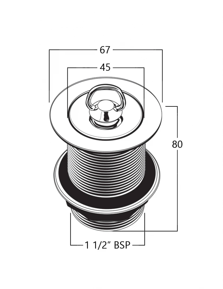 Solid Brass Plug & Waste - 40 x 80 - No Overflow.