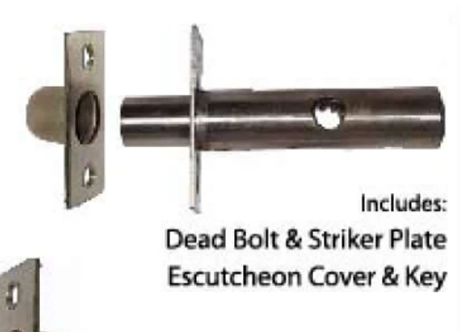 Includes bolt, striker plate, escutcheon cover & key.