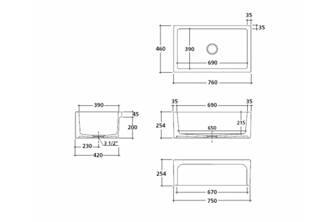 - Note: Fine Fireclay is a natural product and therefore subject to variations. This should be seen as a quality that adds to its unique natural beauty. Variations +/- 2% to the specifications are common and acceptable and are within industry tolerance. We always recommend the cabinet maker and stone provider has the actual sink with them to measure before making cabinetry or cutting stone. For more information please visit our Installation Care & Warranty page or Contact Us.