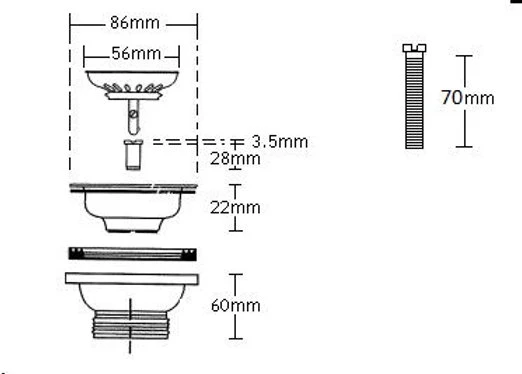 - Includes extended 70mm thread for thick ceramic sinks
