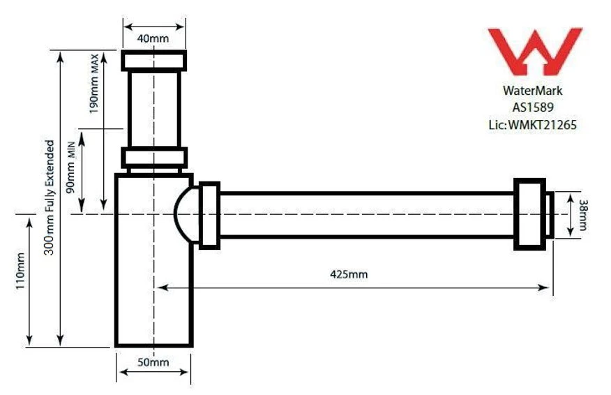 The slimmest and most adjustable bottle trap on the market! Many plumber's and interior designer's favourite with a beautiful sleek shape and solid brass construction the base of the bottle can be easily unscrewed to recover any items lost down the waste such as jewellery. Horizontal and vertical pipes can be cut shorter to suit almost any application. Note: If you require an abnormally long vertical extension pipe for a very large set out purchase with the AU4040-VE (Click here to view product page).